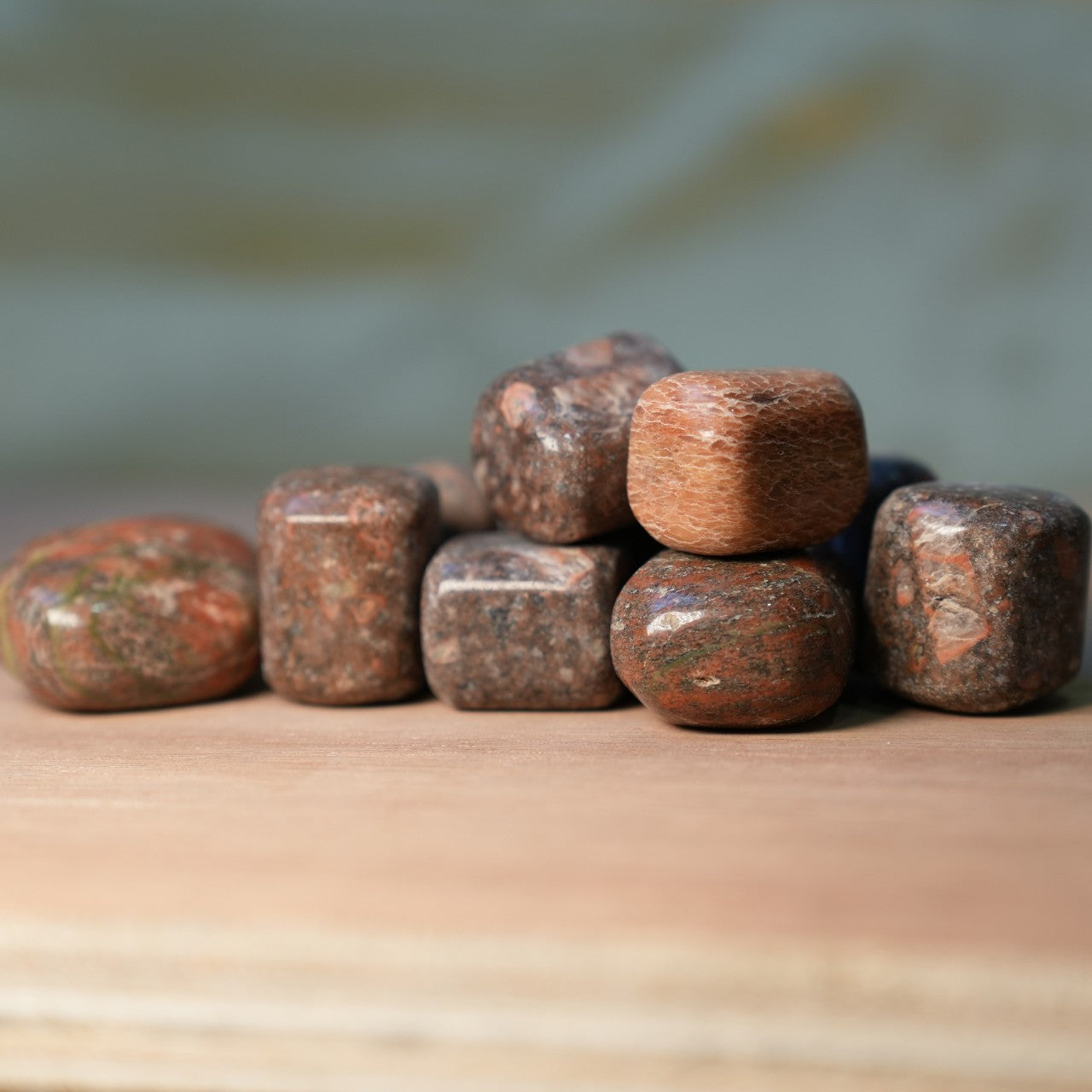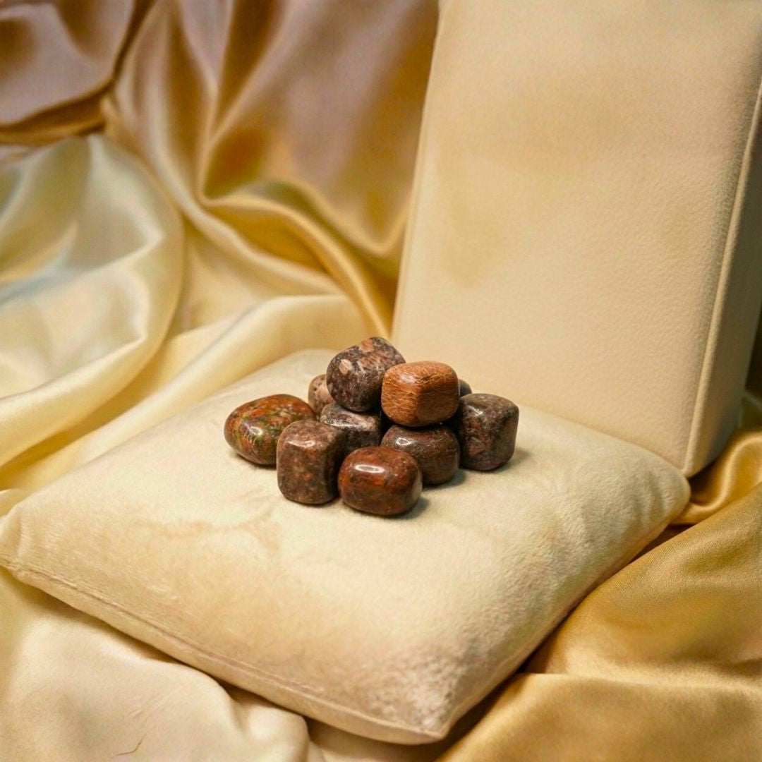 At Asnuva, only high‑quality, natural Unakite tumbled stones are offered: